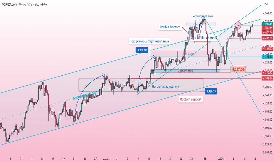 في 12 يناير 2026، ارتفع سعر الذهب واستمر في الارتفاع1️⃣ خط الاتجاه (Trendline)