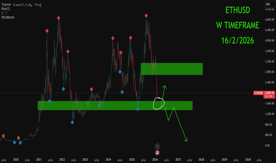 ETHUSD من الذعر إلى إعادة البناء… هنا يُفرَز المتداول من القطيعالإيثريوم تعرّض لـ تفريغ عنيف ومقصود من مناطق عليا، كسر خلاله عدة دعوم متتالية بلا رحمة، إلى أن وصل إلى منطقة طلب تاريخية عميقة.