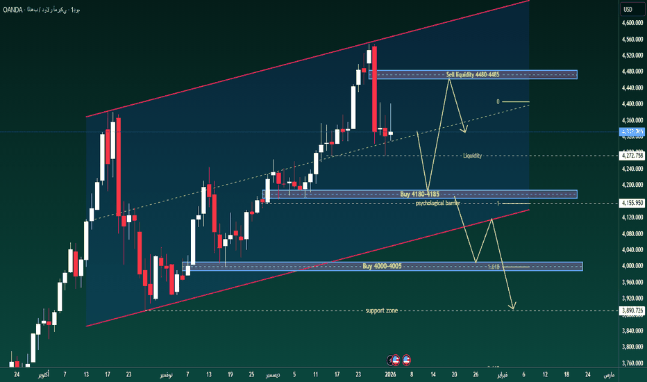 يُظهر سوق الذهب مؤشرات على استئناف الاتجاه الصعودي مع بداية العام الجديد. فبعد انخفاض طفيف دون خط الاتجاه، استعاد السعر زخمه سريعًا وعاد للتداول فوق مستوى 4400، مما يدل على استمرار سيطرة ضغط الشراء على السوق.