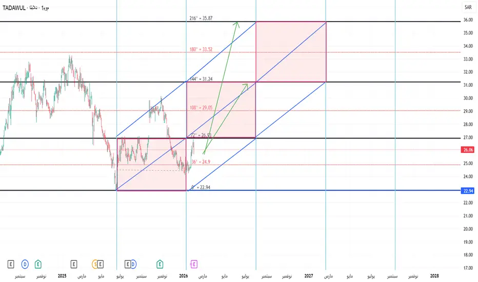 باختراق 27 ريال والاغلاق اعلاها بشمعه يوميه فان السهم يستهدف 31.20 ثم 35.8 وباختراقها يستهدف 40 ريال ويلغى التحليل بكسر القاع المتكون عند 22.90