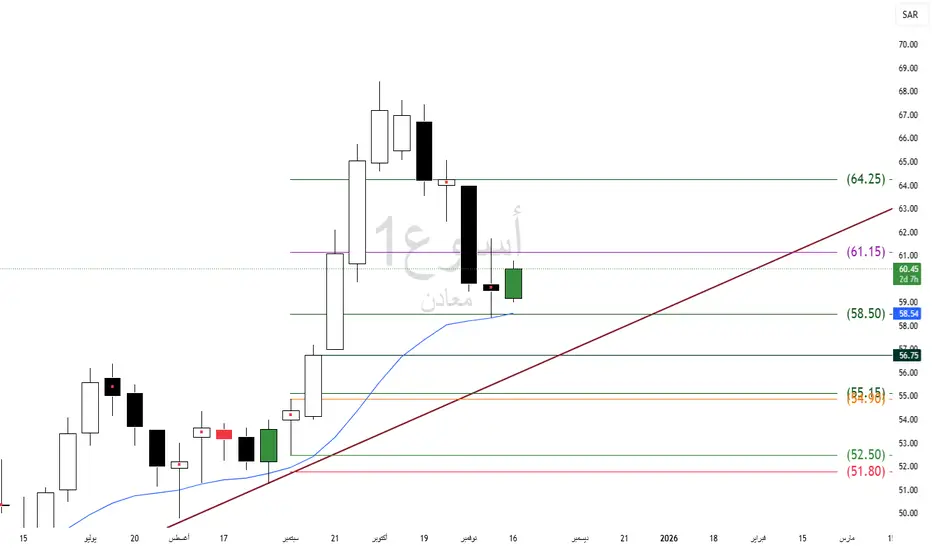 طلب اسبوعي الترندات صاعدة اليومي المتداخل عند 55 تحليل لقصد التدريب ويحتاج اعادة تقيم عند الوصول