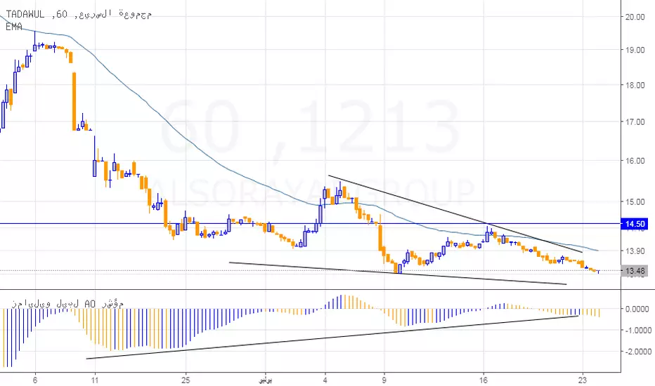 بالنسبة للسهم أرى أن الهبوط لا يزال مستمرا وصولا إلى مستويات 13.48 ريال