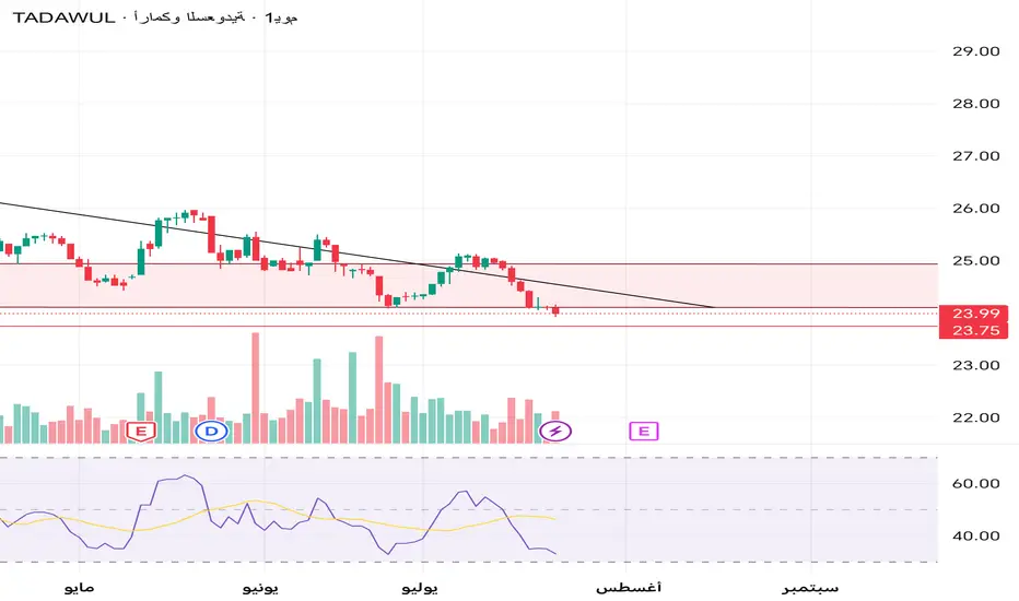 على فاصل اليوم فالسهم كسر منطقة الطلب الأسبوعي، وهذا مؤشر سلبي، وغالبا سيتجه نحو الدعم ٢٣.٧٥ ، وآمل أن يرتد منها ، ولكن في حال اتجه لها فهذا سينعكس سلبا على المؤشر العام لثقل حجم أرامكو وتأثيره على المؤشر