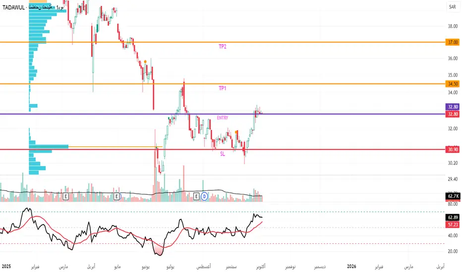مستوى الدخول (Entry): اختراق مؤكد فوق 32.80 أو الدخول عند الدعم الحالي 32.00 مع تأكيد Price Action.