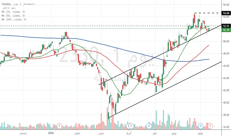 هدف البيع في نطاق سعري بين 53.31 ريال - 54.60 ريال