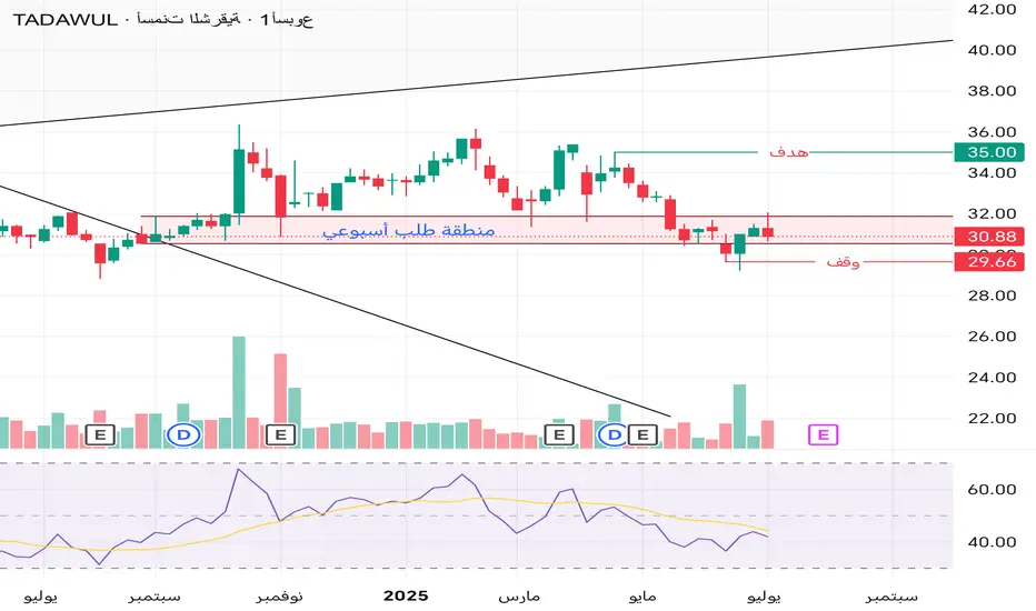 على الفاصل الأسبوعي فالسهم لا يزال في منطقة طلب أسبوعية، وآمل أن يكون هذا الأسبوع إيجابي للسهم ويخرج منها نحو الهدف.