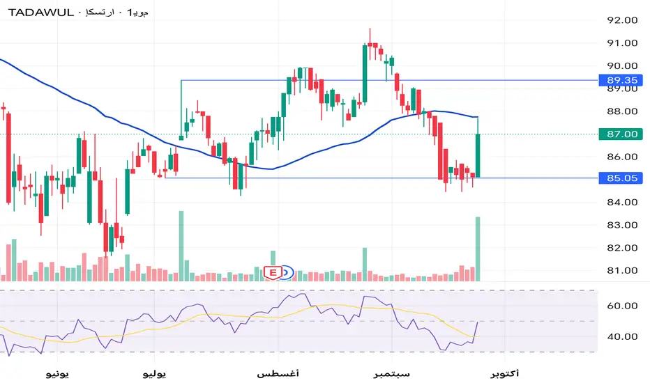 على فاصل اليوم في السهم ارتد من الدعم 85.5 ما يدل على ان السهم كان يتذبذب في منطقه عرضيه وهذا السلوك قد يكون سلوك تجميعي، السهم بالامس عجز عن اختراق متوسط ال 50 يوم، وبمراجعه فاصل الساعه فالسهم بدأ يتذبذب في نطاق عرضي، وهو في مفترق طرق اما ان يواصل الصعود نحو 89.35 واما ان يعود نحو الدعم، والحقيقه اني لا أجرؤ على تحديد توجه السهم؛ لان هذه المنطقه بالنسبه لي تعتبر ضبابيه على فاصل اليوم.