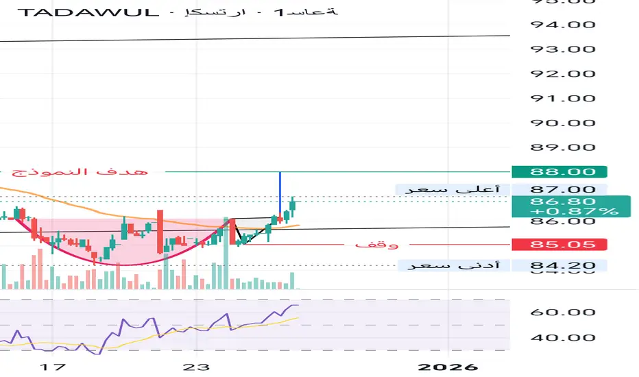 💪وجود زخم في السهم بدليل وجوده في مناطق ٦٥ بحسب مؤشر rsi