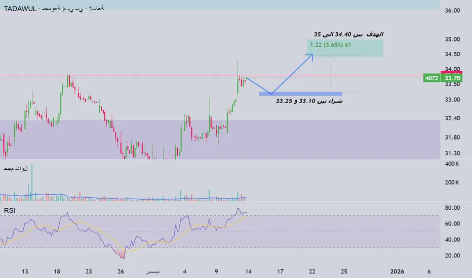 🎯 الأهداف: 1️⃣ هدف أول: 34.40 2️⃣ هدف ثانٍ: 35.00