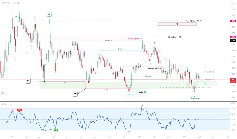 - و اتى بعد ذلك رد فعل سلبي عند اعلان نتائج المالية للربع الرابع و دخلنا في مرحلة هز الثقة وادى الى تدافع بيعي مثل ما توقعنا و ادى الى shakeout ومن ثم تجميع وفق التوقع ✅.