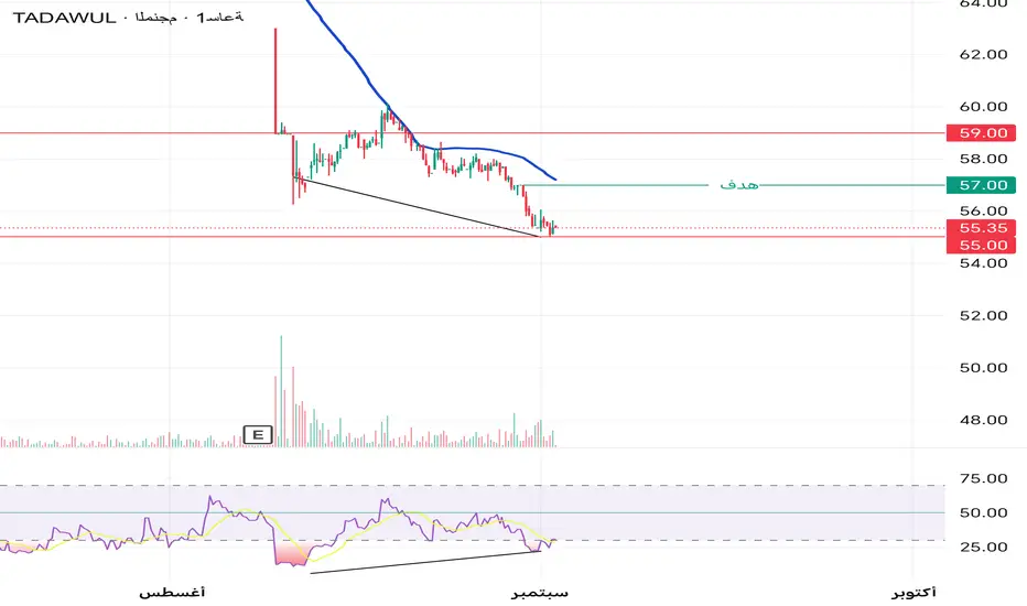 سهم المنجم على فاصل الساعه في منطقه طلب اسبوعيه وقد تكون عليه دايفرجنس ايجابي، قد ينعكس بشكل مضاربي نحو الهدف الموضح، وفي حال اغلق اغلاق يومي اسفل منطقه الطلب الاسبوعي في السهم سيذهب الى مزيد من النزول.