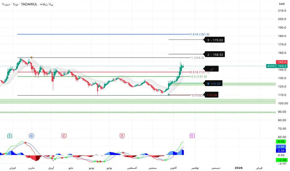 على الفاصل اليومي و مستهدف ١٨١ يتوافق مع نسبة ١.٦٨١ فيبوناتشي