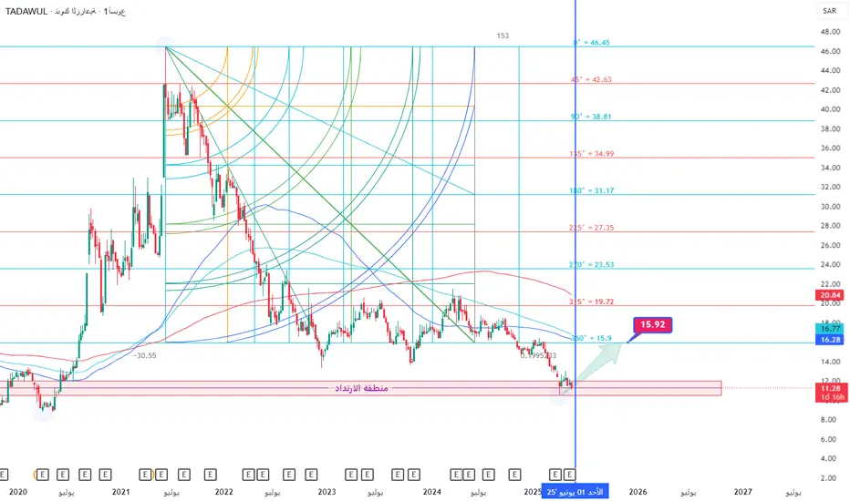 السهم حقق مستهدفات الزوايا السعرية والفترة الزمنية للموجة الهابطة والآن في منطقة الارتداد لتكوين موجة صاعدة بإذن الله لنتابع ..