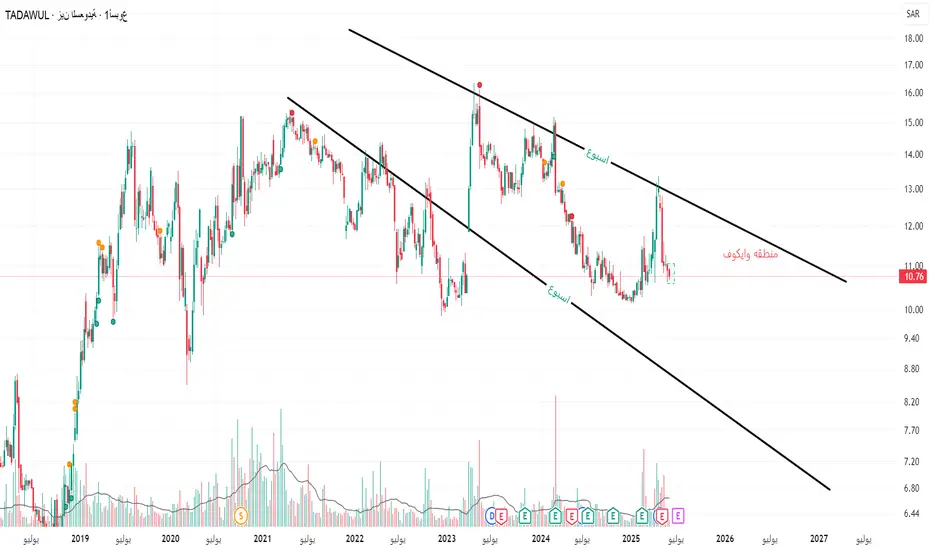 السهم في مرحلة محورية، ويجب مراقبة السلوك السعري في منطقة 10.70 – 11.00 ريال بدقة. إذا ثبت وجود تجميع وحدث اختراق صاعد من القناة، فستكون إشارة شراء جيدة لمستثمري المدى المتوسط والطويل.