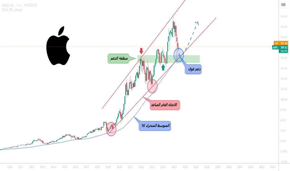 📈 وبالتالي، طالما أن الدعم الأخضر صامد، سنكون بانتظار فرص شراء طويلة الأجل تتبع خط الاتجاه الصاعد على سهم AAPL.