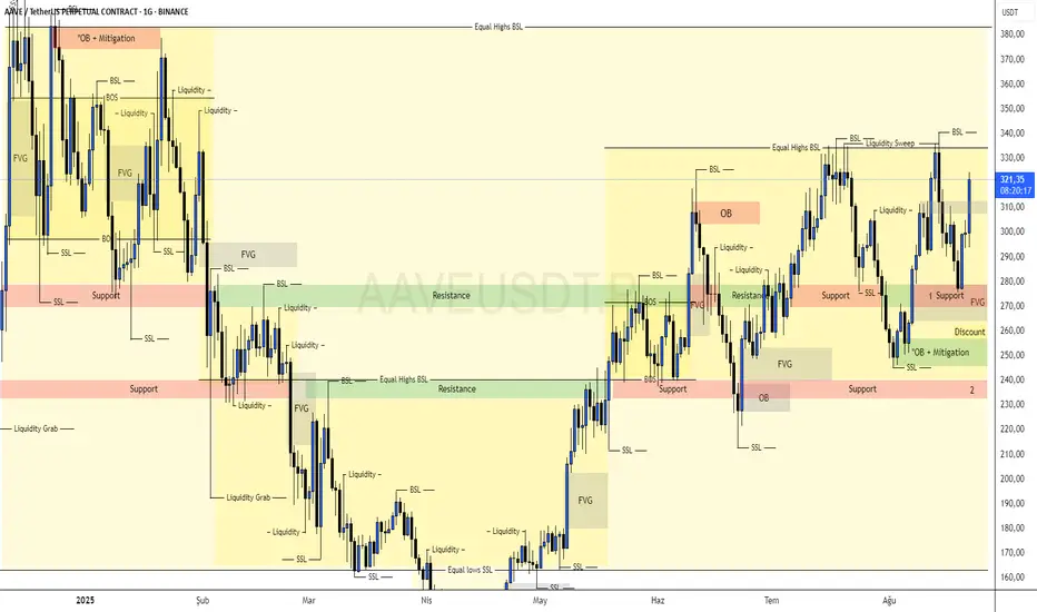 AAVE, 1 numaralı kırmızı taralı alandan güzel bir tepki aldı.