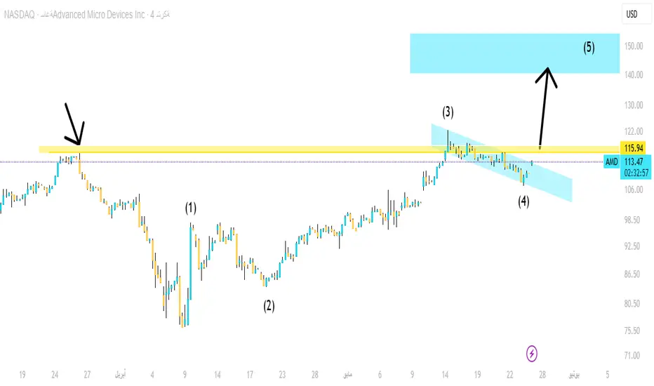 مع كسر الوتد لأعلى، يتوقع استكمال الموجة الخامسة باتجاه المنطقة السعرية بين 137 - 153.