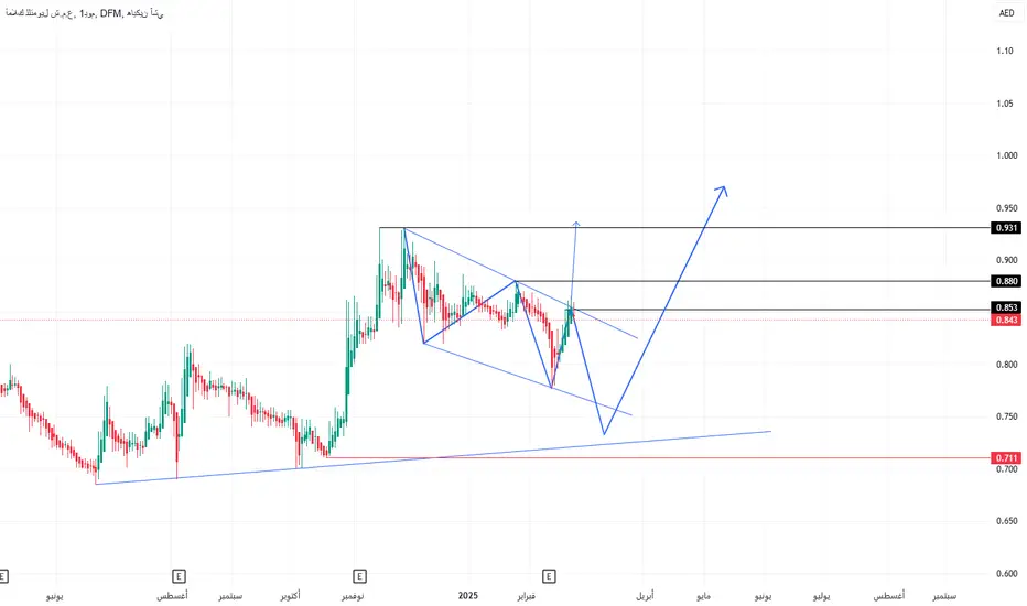 عدم اختراق السهم للترند الهابط قد يتجه السهم لمستويات 0.76 - 0.71