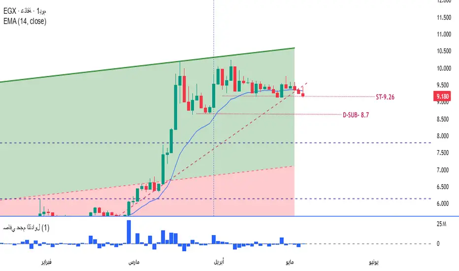 فمن الامانة التنبيه على احتمال نزول السهم الى منطقة 8.7 و 8.16 ولكن المحطة الاخيرة فى حالى استمرار التصحيح 7.5 نهاية التصحيح فى حالة كسر 8.7