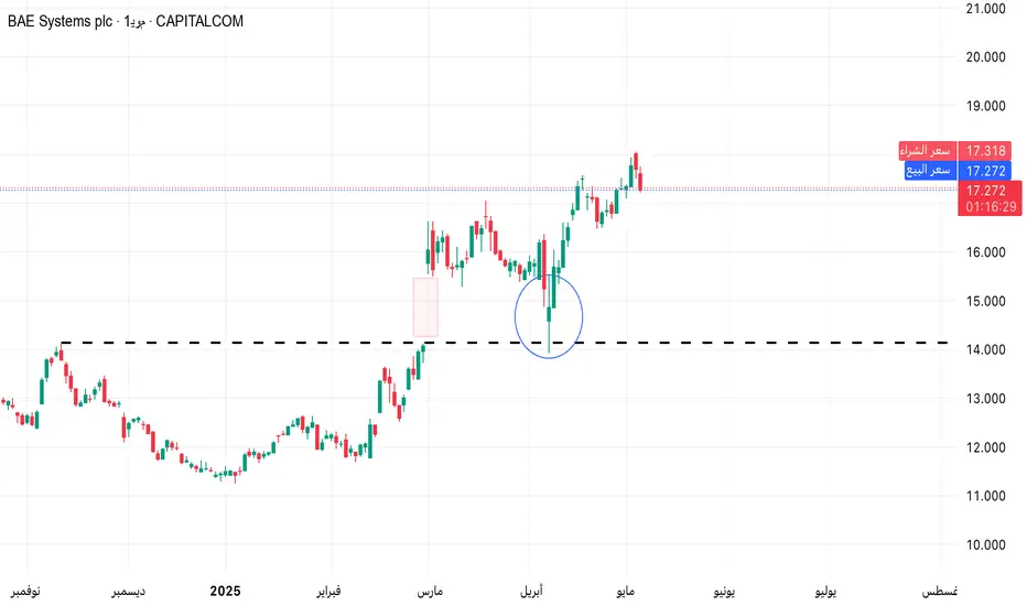 الرسم البياني اليومي لشموع BAE Systems (BA.)