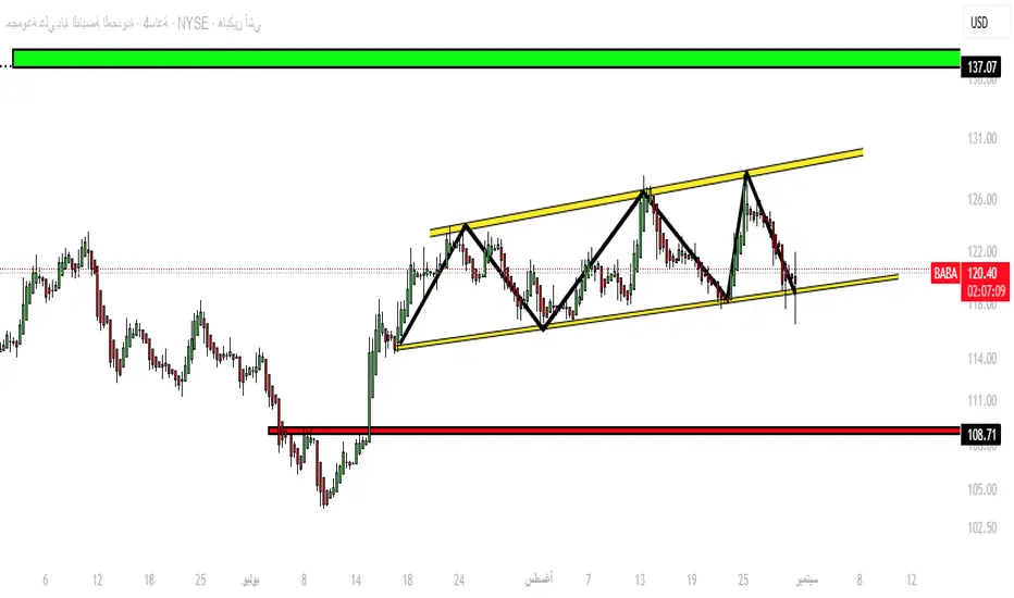 كما هو موضح في الرسم البياني قناة سعرية لا يزال السعر يحترم حدود القناة وبالتالي يبقى التداول ضمن القناة الى ان يتم كسرها في هذا الشارت يوجد مستهدف هابط عند مستويات 108 فجوة سعرية لم يتم اختبارها سابقا وهدف صاعد في حال تم الاختراق العلوي عند مستويات 137 وهو مستوى تاريخي على الفاصل الشهري