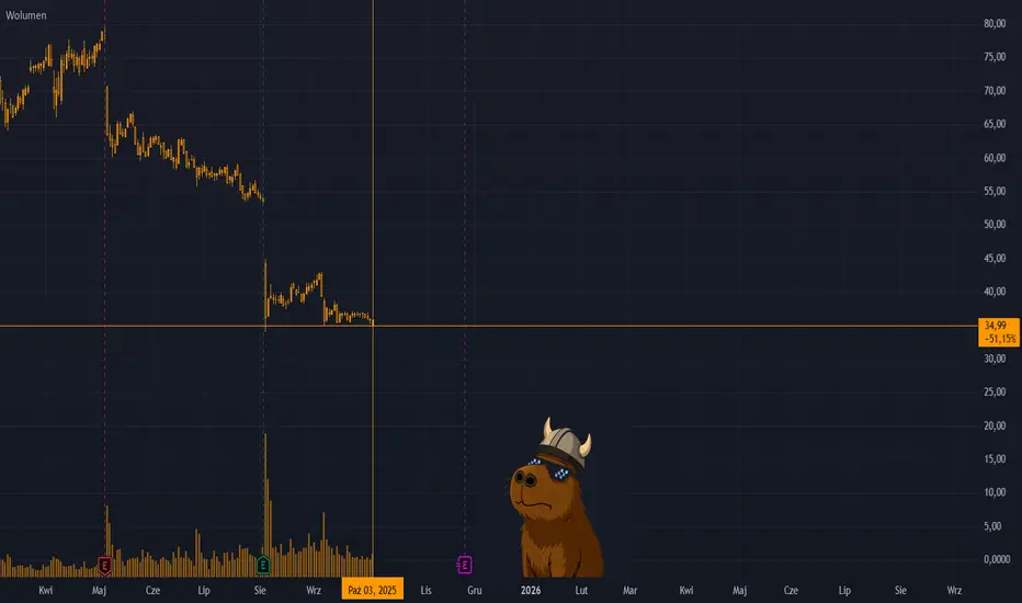 Nie znalazłem żadnych istotnych informacji, które mogłyby zagrozić stabilności spółki lub doprowadzić do jej niewypłacalności. Biorąc pod uwagę wskaźnik dywersyfikacji wynoszący 20 oraz zaobserwowane odchylenie bieżącej ceny akcji od średniej rocznej wartości ponad 16 EPS, zdecydowałem się ulokować 15% mojego kapitału w tej spółce po cenie zamknięcia ostatniego dziennego słupka.