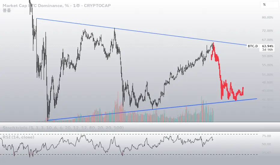 또한, 비트코인 도미넌스 역시 곧 하락할 가능성이 높다고 보고 있습니다.