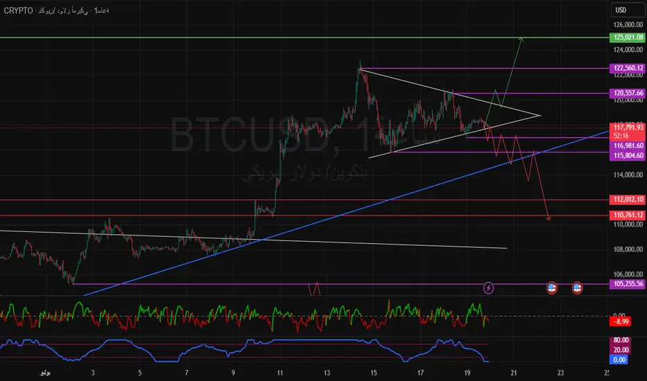بشرط: بقاء السعر فوق 117,000$ وظهور فوليوم شرائي مؤسسي.