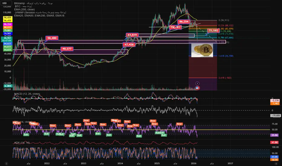 السلام عليكم .. هذه قراءة قابلة للخطأ والصواب لمسار عملة البتكوين ظهرت لي من خلال الاطلاع على الشارت وليست توصية بيع او شراء ، وكما يُشاهد من الشارت فقد تم دمج لاداة الفيبوناتشي مع مناطق الدعم التي مرت بها العملة خلاال الفترة الماضية ، وقد نشاهد مناطق هابطة في اسعار العملة المذكورة تم توضيحها على الشارت ، وفي النهاية تبقى وجهة نظر قد تخطيء وقد تصيب ، والتوفيق من الله ، اسأل الله التوفيق للجميع، وشكراً.