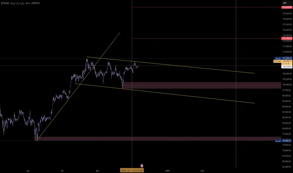 في حال نجح السعر في اختراق 112K والثبات أعلاه، ممكن نشوف محاولة لاختبار 121K – 122K.