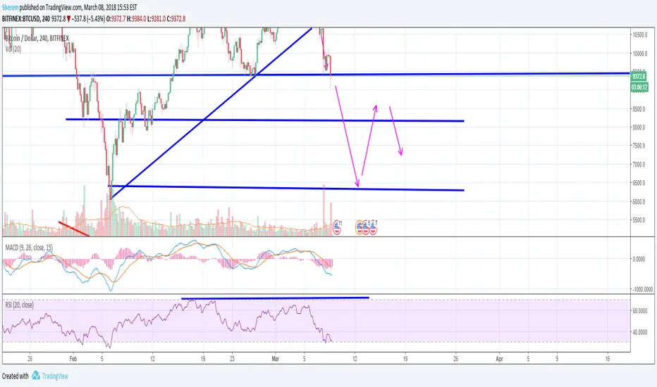 One of my points to look at was 9k, right now you should be profitable and I would take your profits and wait for a further move down. It could keep going up to the 9.5k-9.7k area, that is the next resistance point before it goes back down. You could keep a buy at this 9k level, but I am not since it already hit and took some profits. I will be keeping my buys at 8.2k and going in heavy at 6k to play those levels. Of course, in a martingale fashion in case the market really starts moving down. Once we get a push down to 6k, I would expect it to bounce up to the 8-9k range and then come back down. The way back down will really determine if we start moving up from that point or if we move lower to 3.5k, which we need to be mindful of.