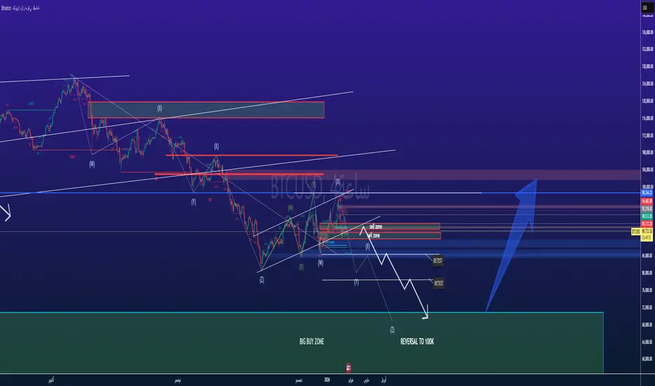 يبدو أن البيتكوين يمر بمرحلة تصحيحية معقدة تشير بنيتها الداخلية إلى وجود احتمالية هبوط لا يستهان بها. إليكم تفاصيل قراءتي للسوق: