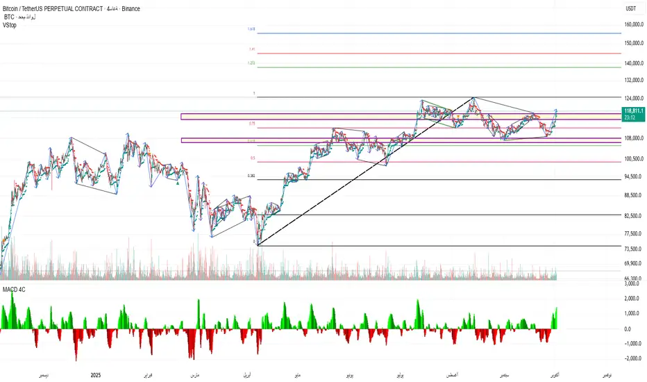 اقترب جدا من كسر القمة السابقة ولكن علامة الاستمرار أن يكسرها بقوة بدون دايفرجنس أو يكسرها بدايفرجنس ويعمل هبوط بسيط ثم يعاود الوضع الآن للمراقبة والانتظار