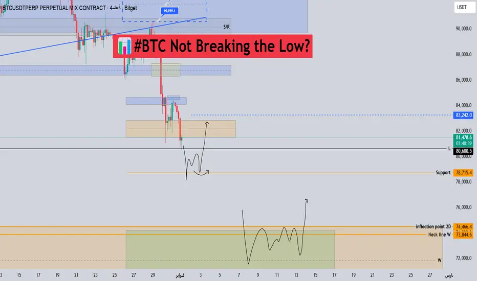 ➡️ إذا انخفض السعر سريعًا دون مستوى أدنى L، فإن مستوى الدعم قصير المدى الذي يستحق المتابعة هو حوالي 78715.