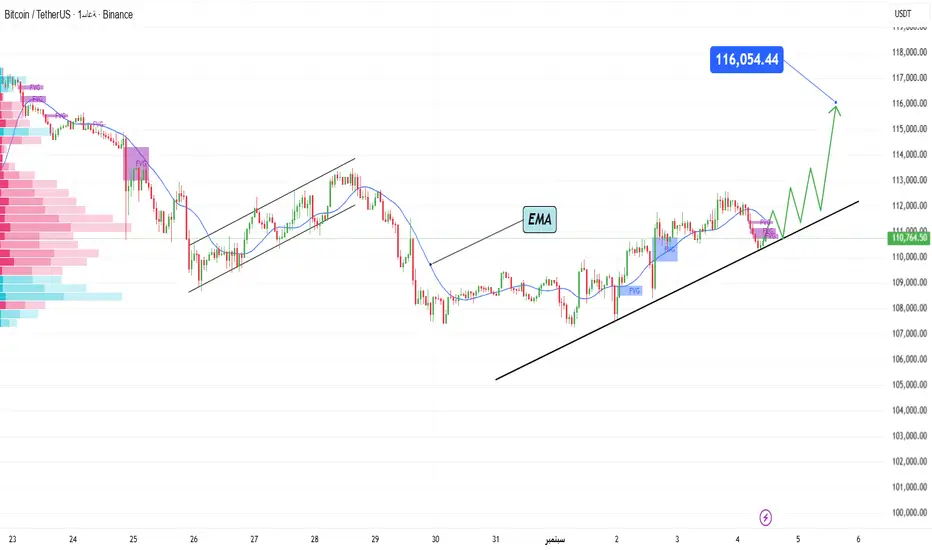 يُظهر حجم الشراء الواضح حول منطقة 110,000 أنها تُمثل دعمًا مهمًا، كما تُساهم مناطق FVG التي تتشكل بالقرب من المتوسط المتحرك الأسي (EMA) في تعزيز الاتجاه الصعودي.