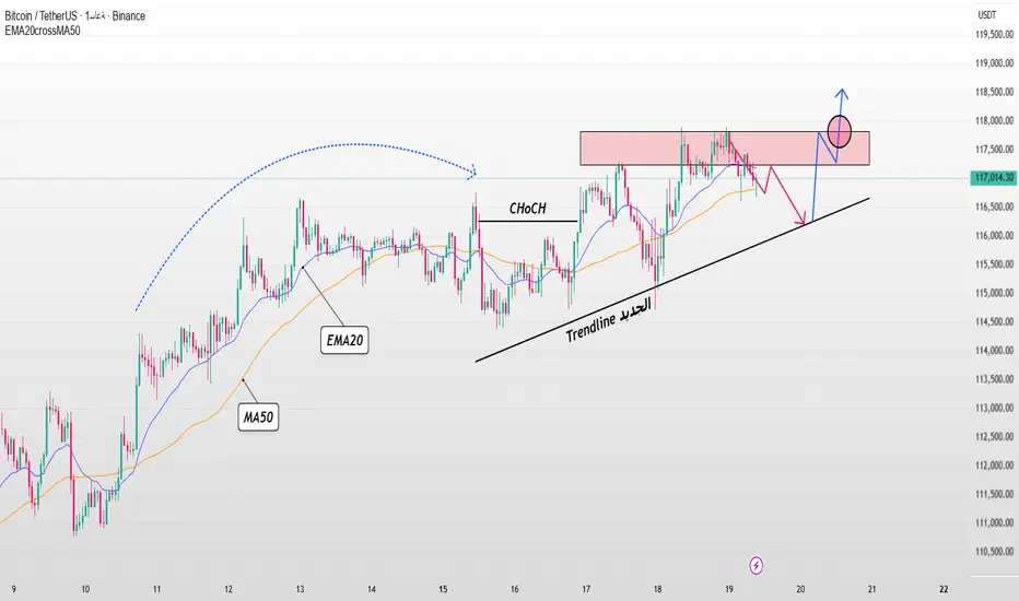 لا يزال Bitcoin على خط Trendline الجديد ، وما زالت EMA20 و MA50 تلعب دورًا داعمًا. بعد التعديل قصير الأجل من منطقة المقاومة 117،800 ، يكون السعر إشارة لاختبار خط الاتجاه قبل التشغيل.