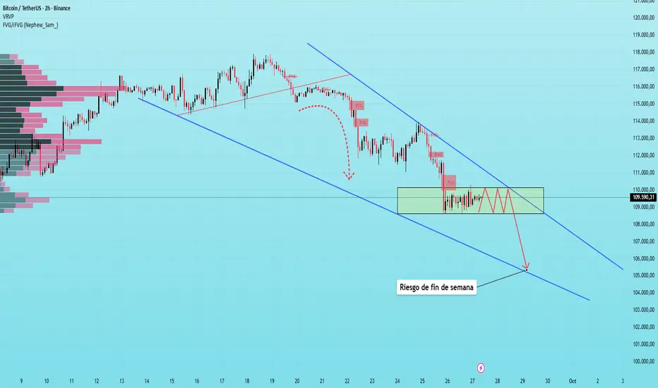 Bitcoin continúa en una clara tendencia bajista este fin de semana, como lo demuestra la estructura de precios que se mantiene dentro de una cuña descendente.