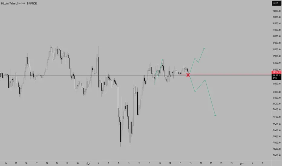 منطقه مهمه جدا الان 84375$ يجب العوده فوقها على الاربع ساعات متبقي ساعه على الاغلاق العوده فوق هذا المستوى البتكوين لصعود الاغلاق تحت هذا المستوى تغيير بنيه التصحيح كما ذكرت بالفيديو السابق او العوده للقاع بالتوفيق......