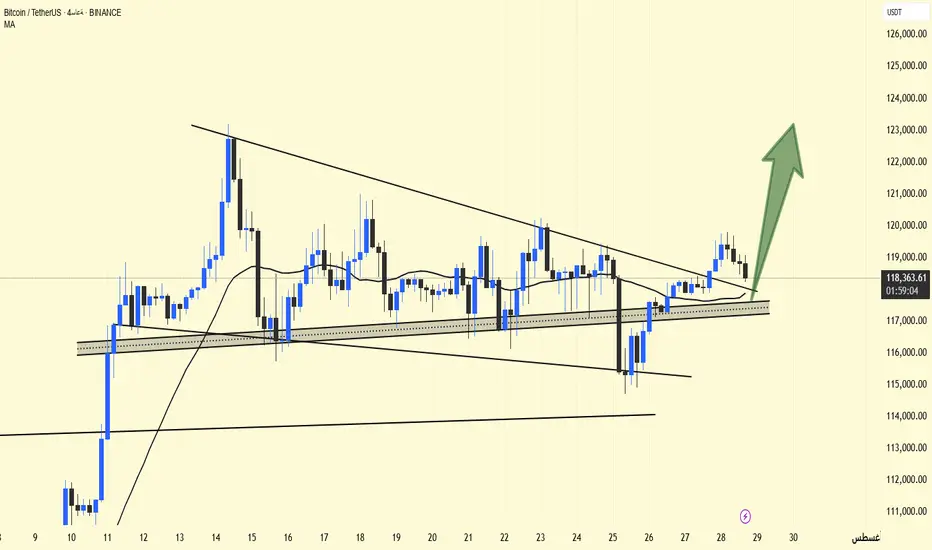 تحديث الرسم البياني لزوج BTCUSDT على إطار 4 ساعات