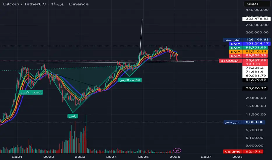 على الشارت الاسبوعي للبتكوين نلاحظ نموذج.ايجابي رأس وكتفين مقلوبة وهو الآن يختبرها اذا نجح الاغلاق الاسبوعي فوق خط.العنق الهدف واضح 323478 ولكن إذا فشل في الوقوف فوق خط العنق بأغلاق اسبوعي فهذا فشل النموذج