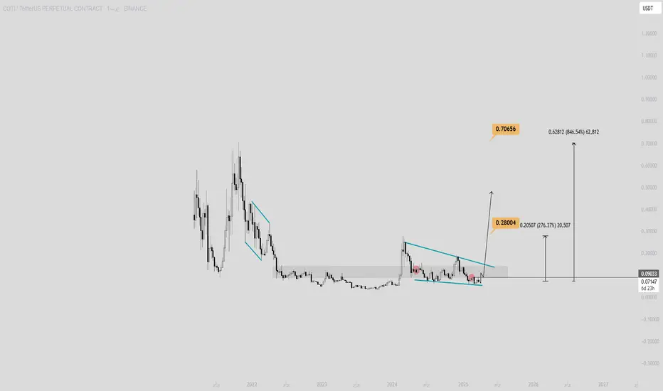 مرحبا بالجميع .. اليوم لدينا عملة coti وهي في منطقه تحضير لصعود هدفها قمه النموذج وثم القمه التاريخيه لها