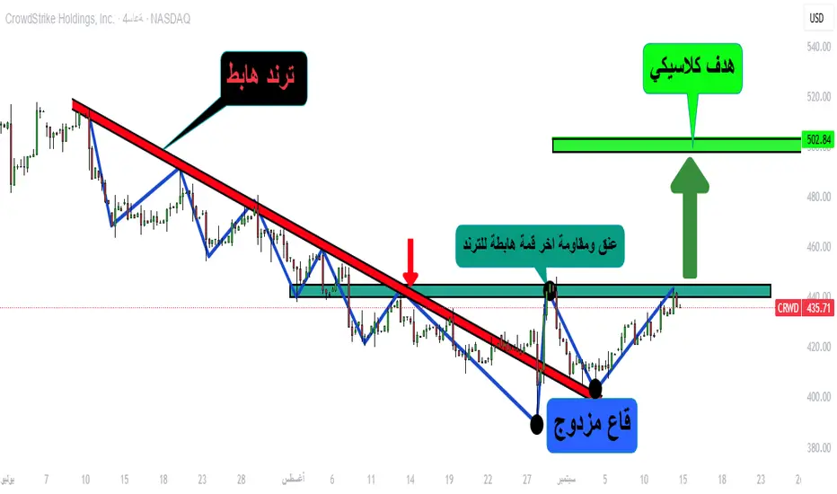 كما هو موضح على الرسم البياني، كان السعر في اتجاه هابط قبل أن يبدأ بتكوين نموذج القاع المزدوج الذي يعتبر من اهم النماذج الانعكاسي ومن تم حدث اختراق للترند بزخم قوي ووصول السعر الى اخر قمة هابطة في الترند التي تعتبر مفتاح الانطلاقة