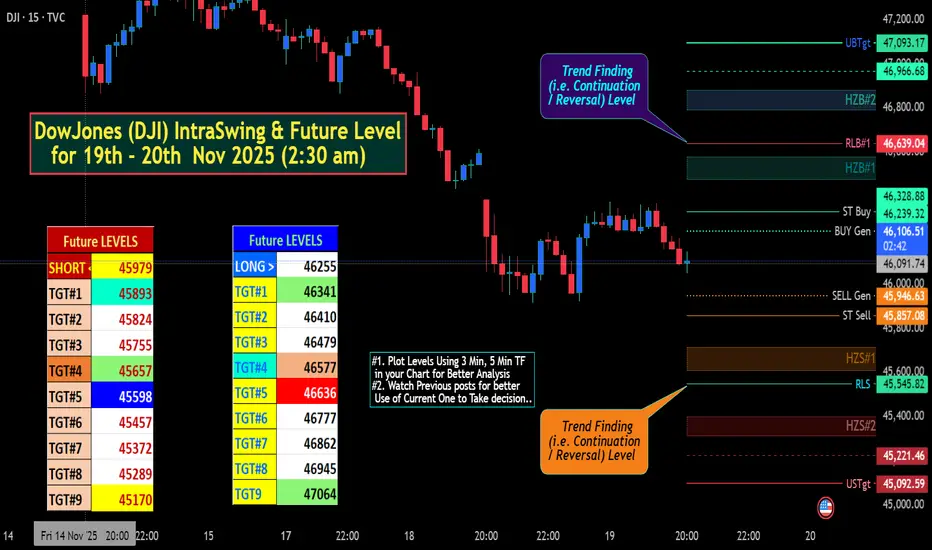 DowJones (DJI) IntraSwing & Future Level for 19th - 20th Nov 2025 (2:30 am)