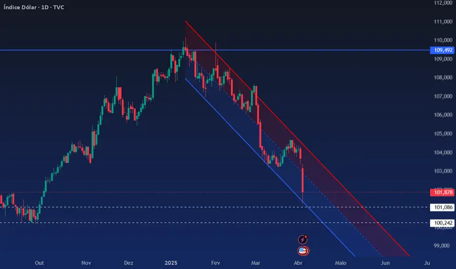 GOLD) e sua imponente sequencia de altas chegou a estar caindo 3%. Mas em termos de mercado de capitais poucos ativos, indices ou equivalentes sentiram um impacto tão forte quanto o índice dólar (