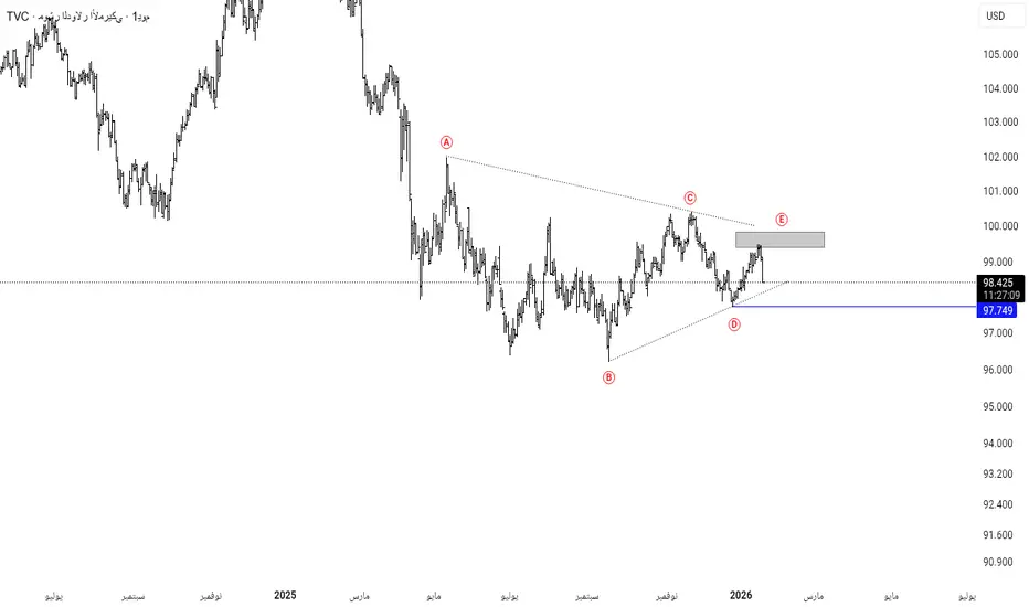 في حال كسر الدولار 97.75 هذا يعني تفعيل المثلث وهذا يعني المزيد من الهبوط