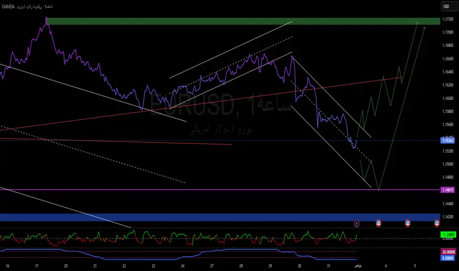 🔹 المستهدفات الصاعدة: 1.1600 → 1.1640 → 1.1700 → 1.1720