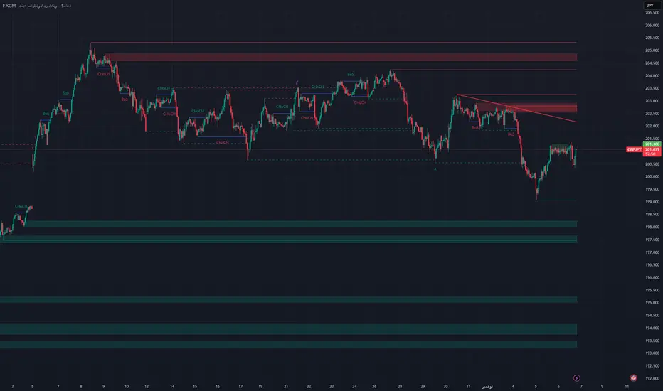 في حال تجاوز السعر لمنطقة 202.20 بإغلاق واضح، فقد نشهد تصحيحًا أوسع نحو 203.50 – 204.00 لإعادة اختبار مناطق العرض العليا قبل أي استئناف للهبوط.