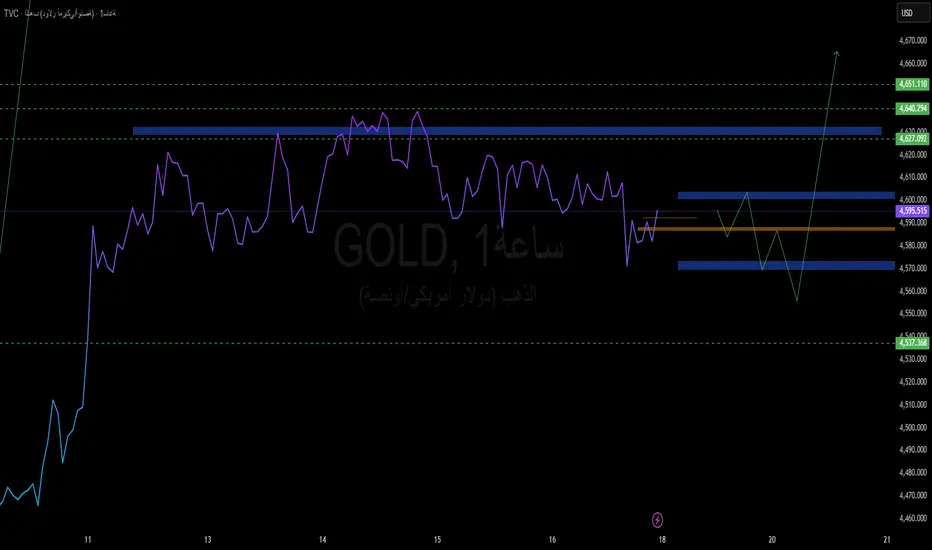 الأهم الآن أن السعر عاد ليتداول أعلى 4585 ويحاول إعادة بناء توازن جديد قرب 4600، وهذا المستوى تحوّل إلى نقطة قرار مركزية.