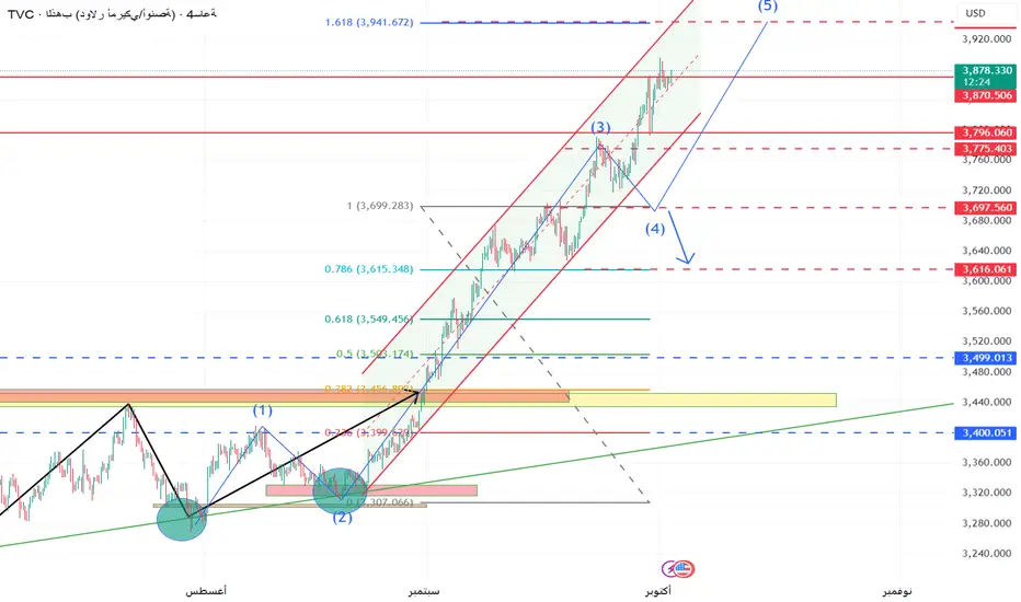 السيناريو الثاني (صعود): اختراق قوي وثبات أعلى 3893$ يفتح الطريق نحو 3913$ أولاً ثم 3950$.