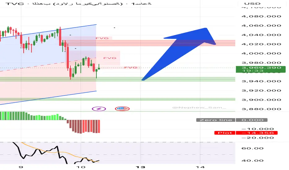 السعر الحالي 3,960 دولار للأونصة، ويتداول الذهب داخل قناة صاعدة رئيسية، لكنه حاليًا يتحرك في تصحيح هابط مؤقت بعد رفض قوي من منطقة ,– 4,040.